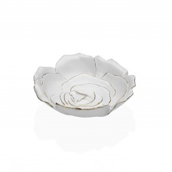 CENTRO DE MESA FLOR BLANCA Referencia: 20820061 Medidas: 18x18x4.5 cm. Material: Resina Packaging: CAJA MARRÓN VERSA Info: 0.33333 kg. Versa Label