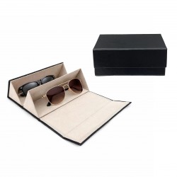 FUNDA GAFAS DOBLE NEGRA Referencia: 20931160 Medidas: 16x9x5.5 cm. Material: Cartón Polipiel Textil Packaging: Info: 0.0875 kg.