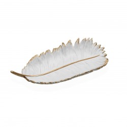 CENTRO DE MESA HOJA BLANCA Referencia: 20820058 Medidas: 27x13x4.2 cm. Material: Resina Packaging: CAJA MARRÓN VERSA Info: 0.375 kg. Versa Label