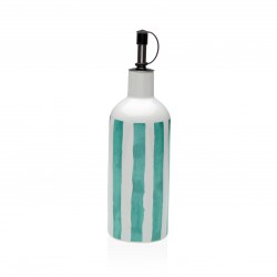 ACEITERA RAYAS TURQUESA Referencia: 20091351 Medidas: 6.1x6.1x21 cm. Material: Porcelana Packaging: Info: 0.277778 kg. 0.34 L Versa Backstamp Bulk pack Apto: Apto para uso alimentario
