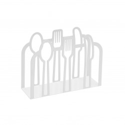 SERVILLETERO CUBIERTOS METALICO BLANCO Referencia: 21700282 Medidas: 15x4.5x10 cm. Material: Metal Packaging: CAJA BLANCA CON PEGATINA Info: 0.20833 kg. 1 mm hierro 2 pcs/ set