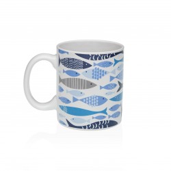 MUG FISH Referencia: 22090116 Medidas: 12x8x9.5 cm. Material: Gres Packaging: CAJA MARRÓN Info: 0.322222 kg. 0.35 L Diseño propio