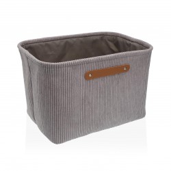 CESTA CORDUROY GRIS CL. RECT. Referencia: 19487283 Medidas: 38x26x25 cm. Material: Poliester PU Packaging: BOLSA PLÁSTICO Info: 0.3 kg.