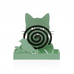 PORTA ESPIRAL ANTIMOSQUITOS GATO MILO VERDE Referencia: 21700349 Medidas: 17x5x17 cm. Material: Metal Packaging: BOLSA PLÁSTICO Info: 0.20833 kg.