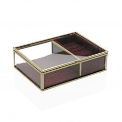 JOYERO DE CRISTAL CON BORDE DORADO 18x13 Referencia: 20930153 Medidas: 18x13x5 cm. Material: Cartón Cristal Metal Packaging: CAJA MARRÓN Info: 0.5625 kg.