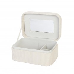 JOYERO PEQUEÑO DE PANA BEIGE CON ESPEJO 22680014 19x13.5x8 cm.