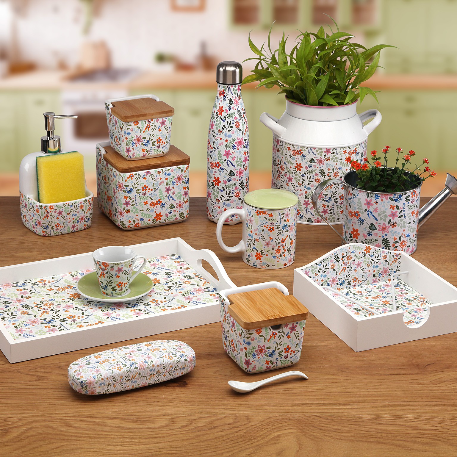 Su interior presenta un vibrante diseño floral en tonos rosa, azul y verde, que aporta un aire acogedor a cualquier espacio del hogar.