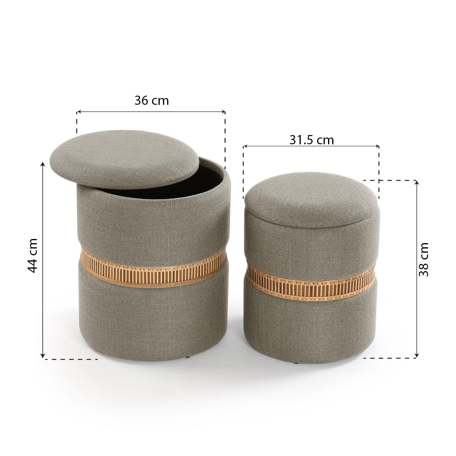 El set de 2 puff con almacenaje gris anillo de bambú es una solución funcional y elegante para cualquier espacio del hogar.
