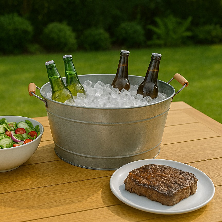Con unas dimensiones de 23 cm de altura, 34 cm de ancho y 48,5 cm de largo, es ideal para mantener bebidas frías en reuniones y eventos al aire libre.