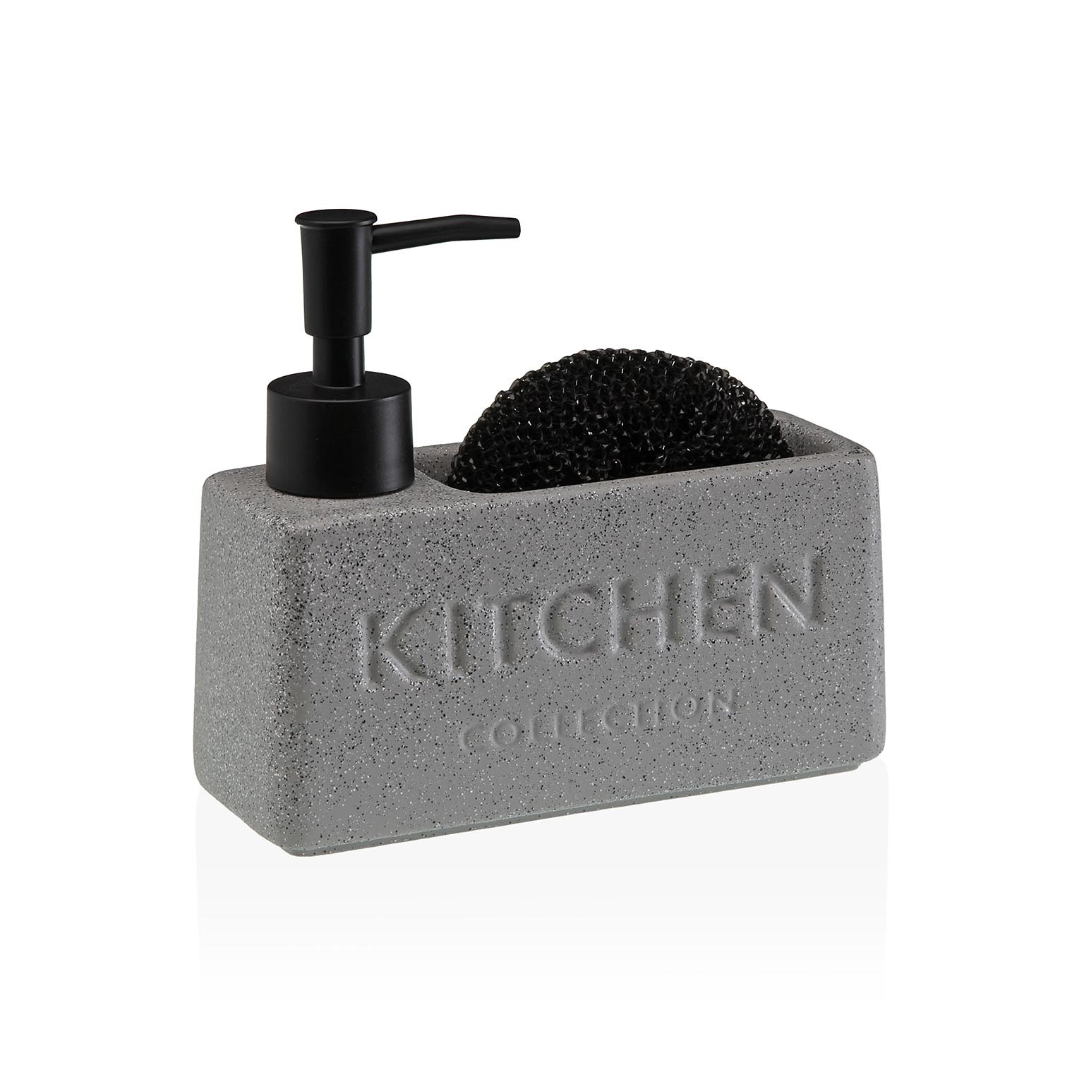 Jabonera negro con hueco para el estropajo.