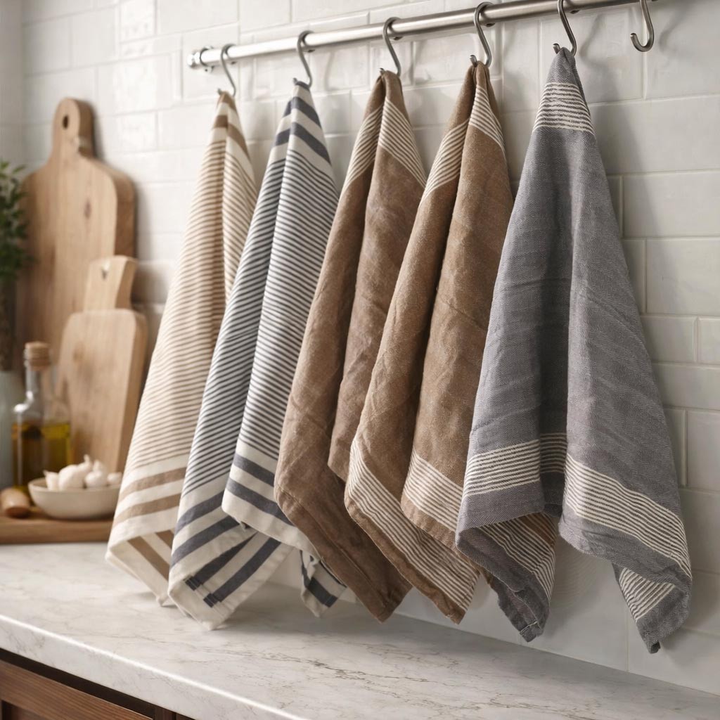 El paño de cocina surtido 50x70 cm está confeccionado en algodón, lo que le otorga una textura suave y absorbente, ideal para diversas tareas en la cocina.
