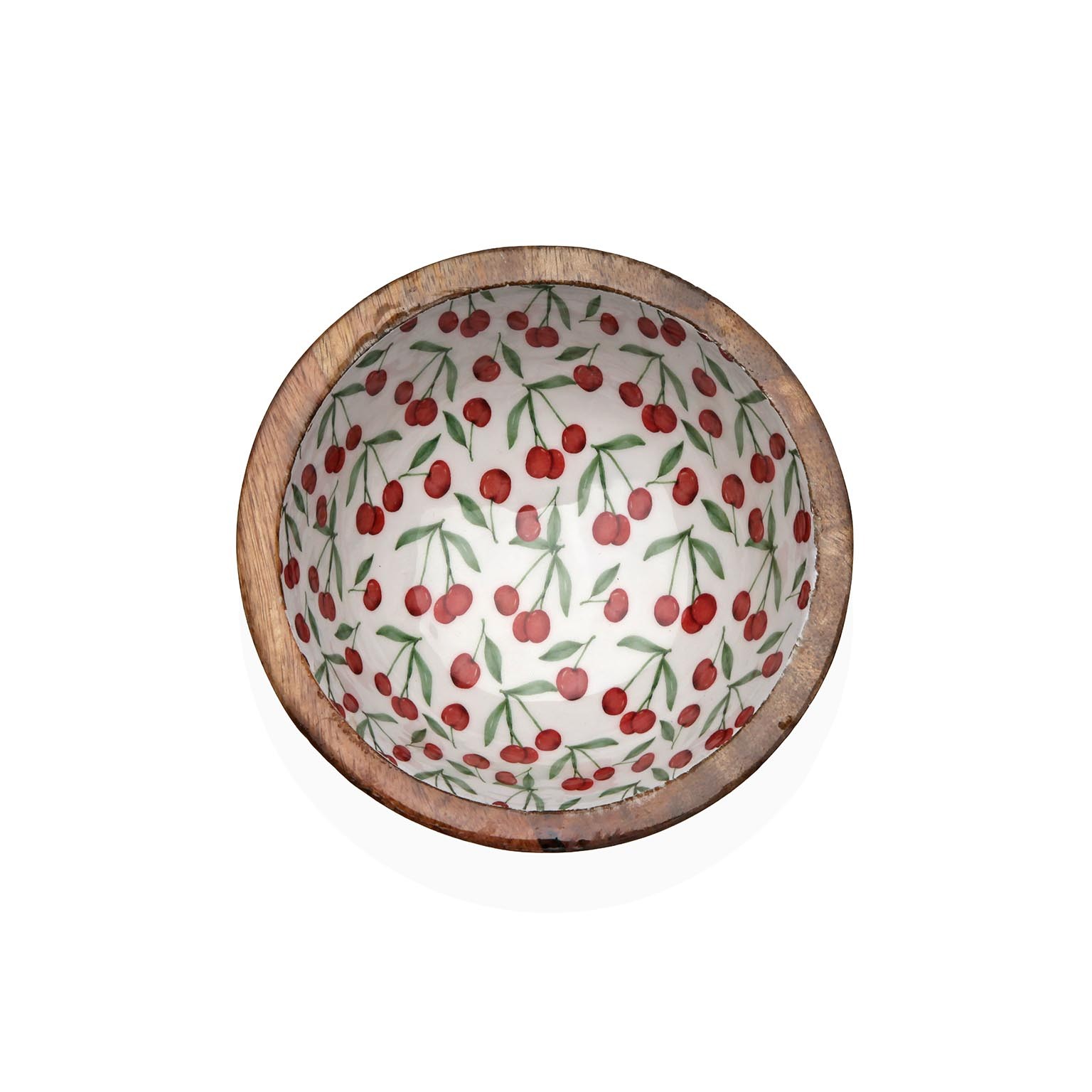 El bol esmaltado Cherries combina la calidez de la madera de mango con un interior esmaltado que destaca por su diseño vintage.