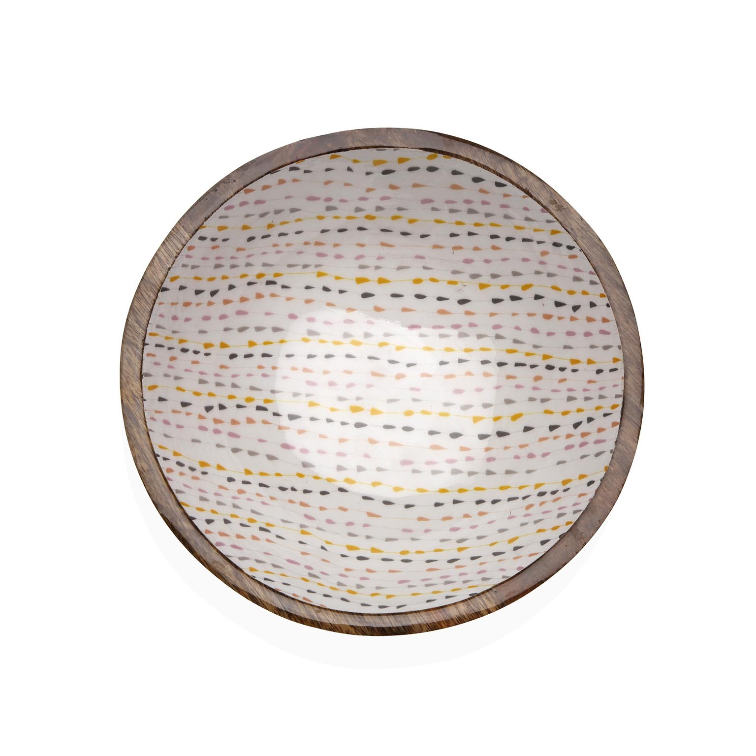 El bol grande esmaltado Nordic Drops combina la calidez de la madera de mango con un acabado interior de porcelana, ofreciendo un diseño moderno y nórdico.