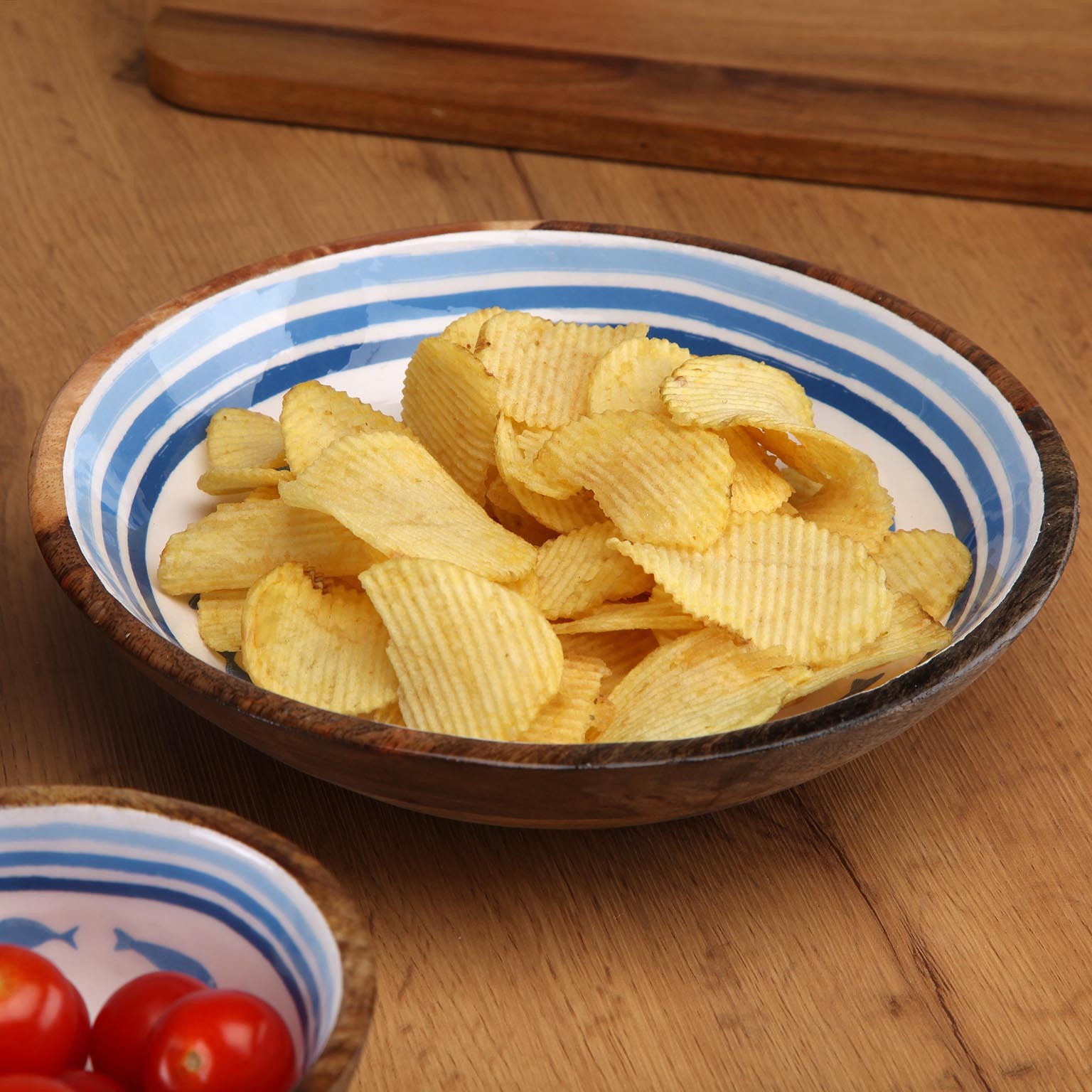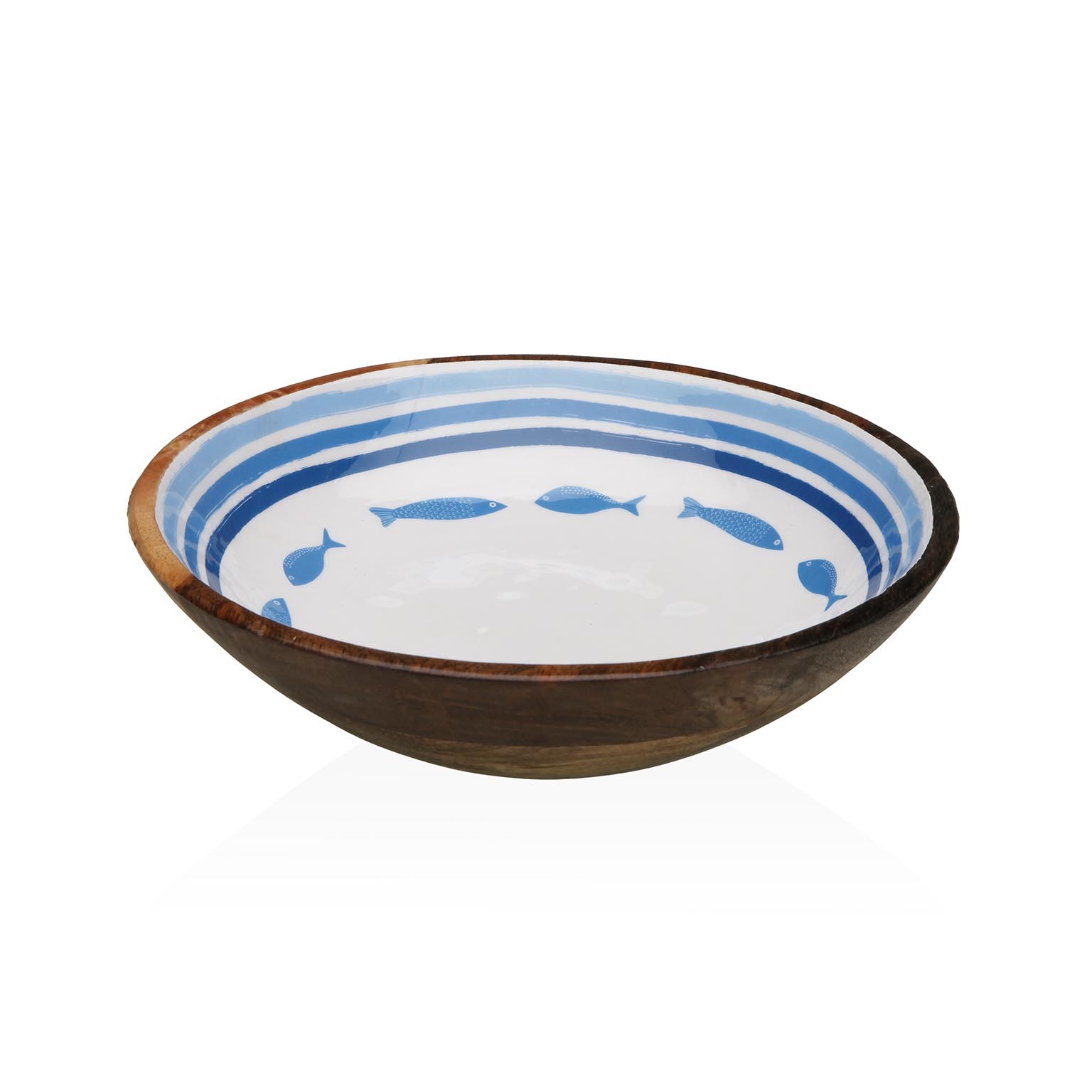 El Bol Grande Esmaltado Oceanic combina la calidez de la madera de mango con la elegancia de la porcelana esmaltada.