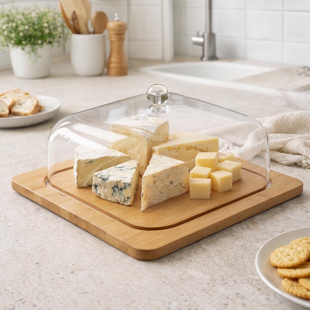 La quesera de bambú de 28 cm es un utensilio esencial para la presentación de quesos en cualquier reunión o cena.