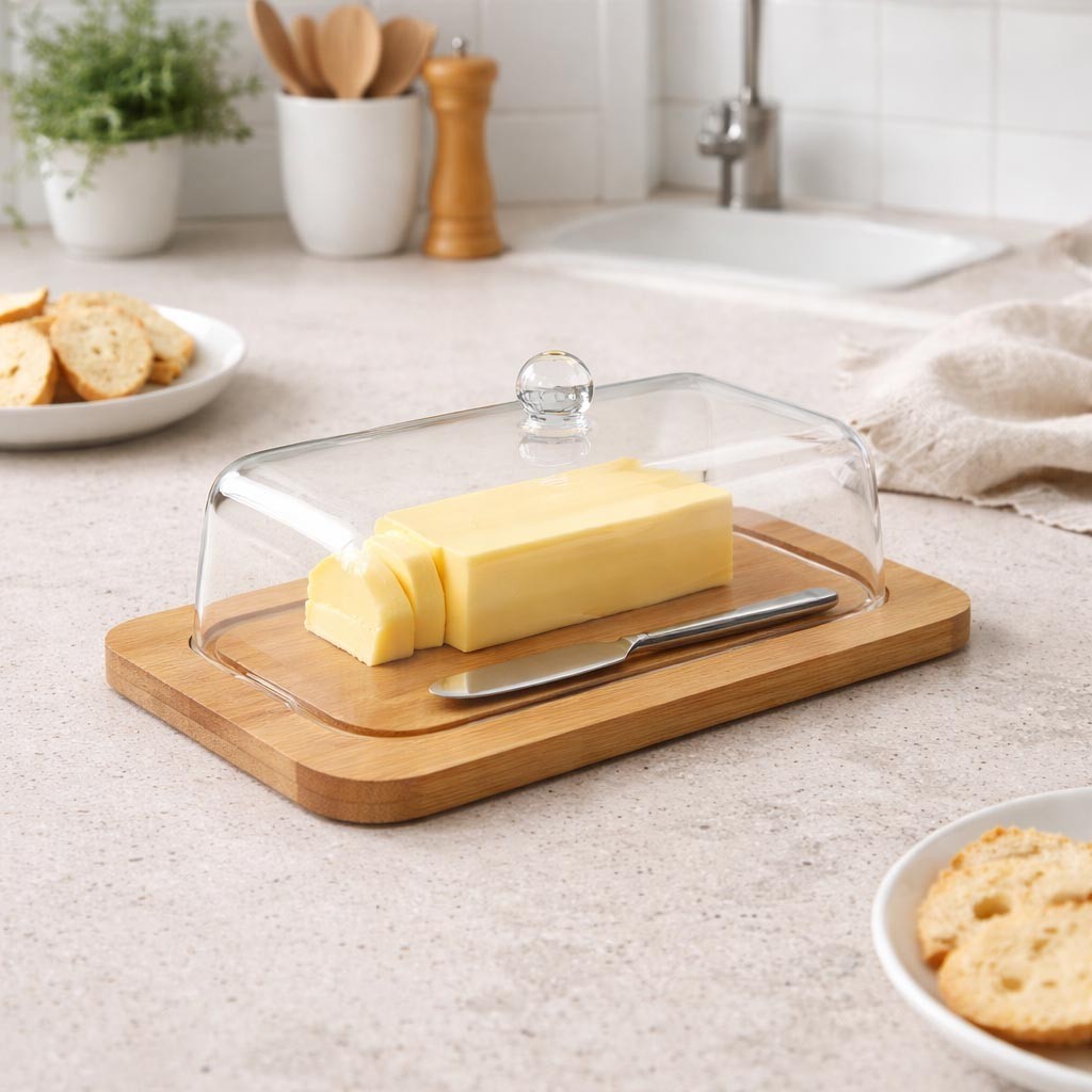 El plato para mantequillera de bambú es un accesorio funcional y estético, diseñado para servir mantequilla en la mesa durante comidas y desayunos.