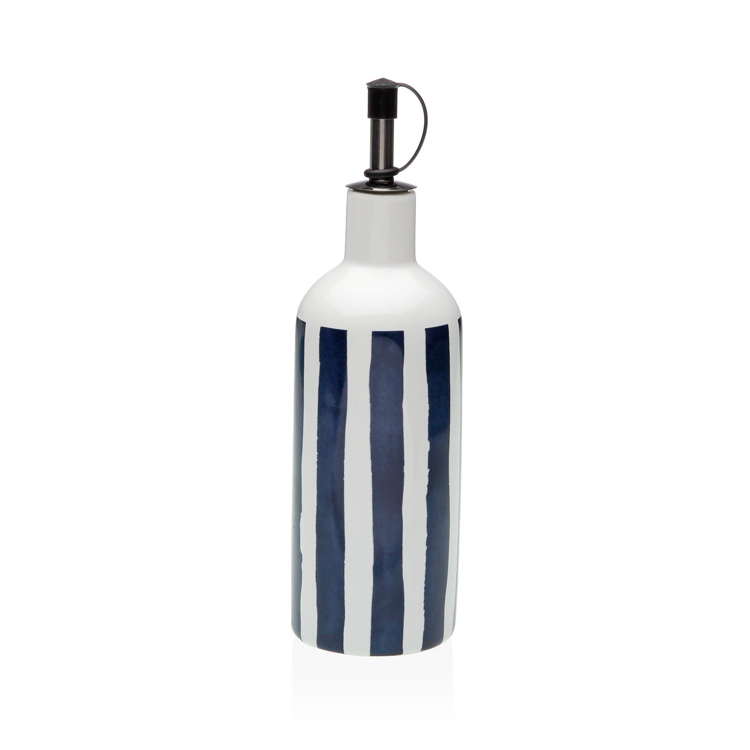La aceitera rayas azul es un recipiente funcional y decorativo, ideal para almacenar y servir aceites en la cocina.