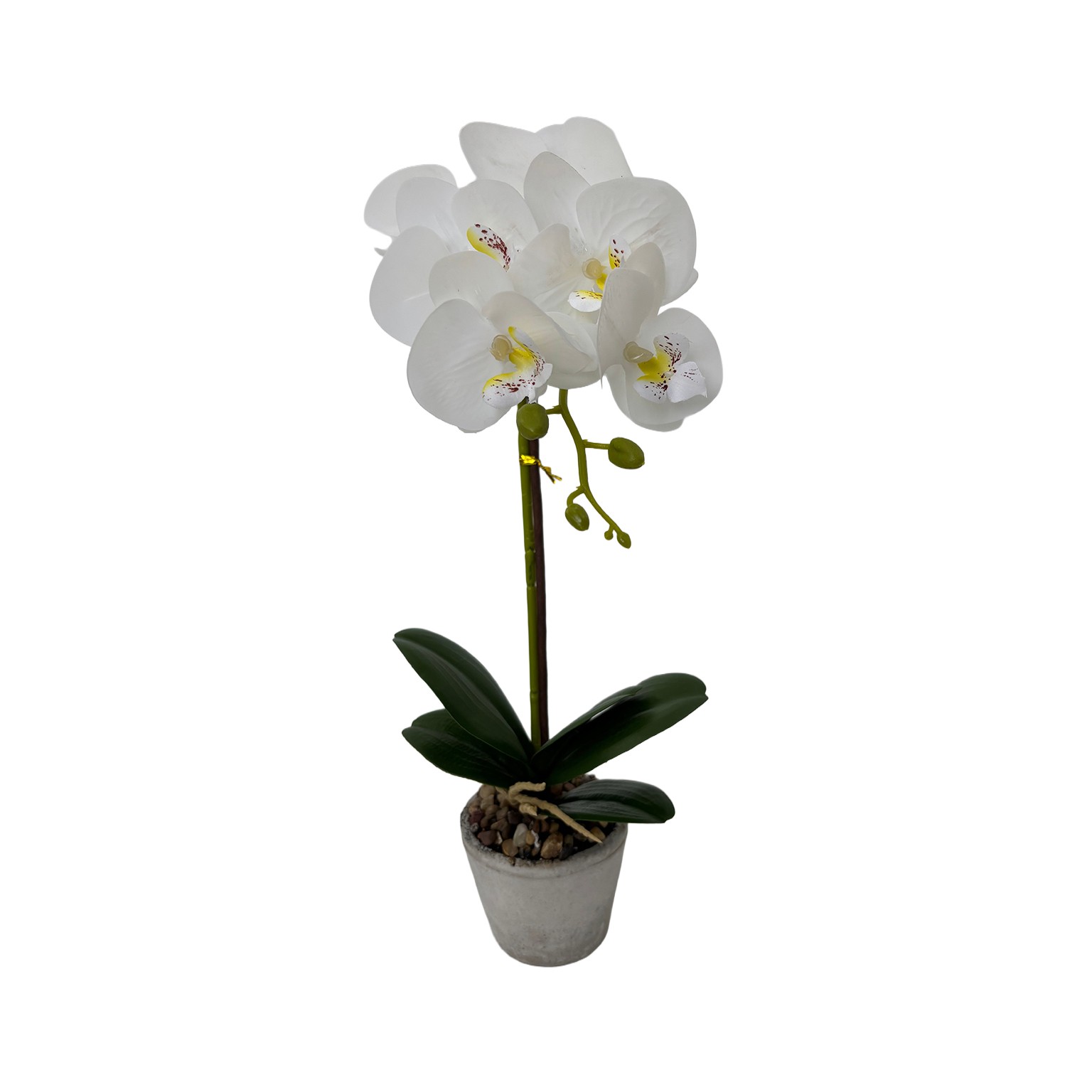 Orquídea de plástico en maceta de cemento