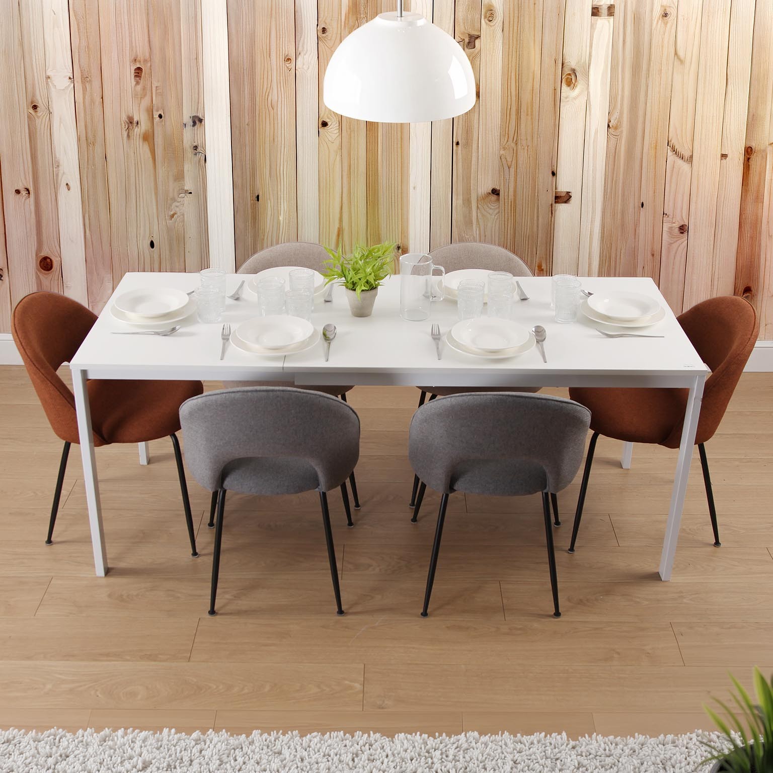 Su diseño minimalista se integra fácilmente con sillas de diversos estilos, ofreciendo versatilidad para reuniones familiares o como superficie de trabajo adicional.