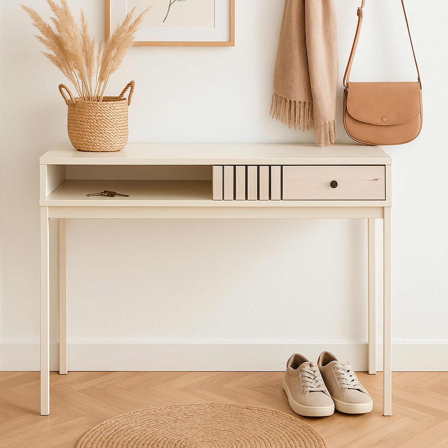 La mesa de entrada Noe es un mueble auxiliar de diseño minimalista y contemporáneo, ideal para entradas y recibidores.