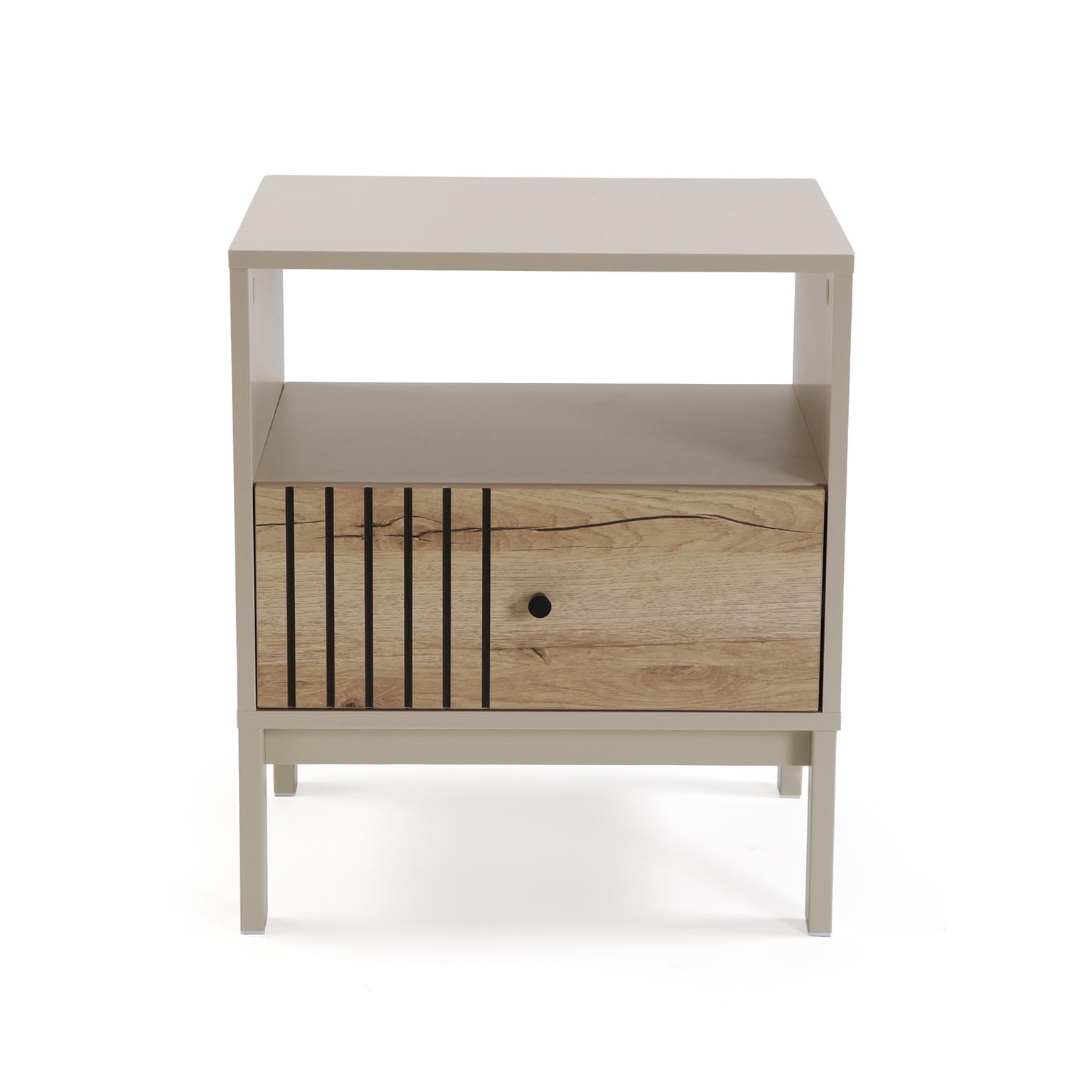 Su práctico cajón ofrece almacenamiento adicional, convirtiéndola en una opción ideal para utilizar como mesa de noche o consola en entradas.