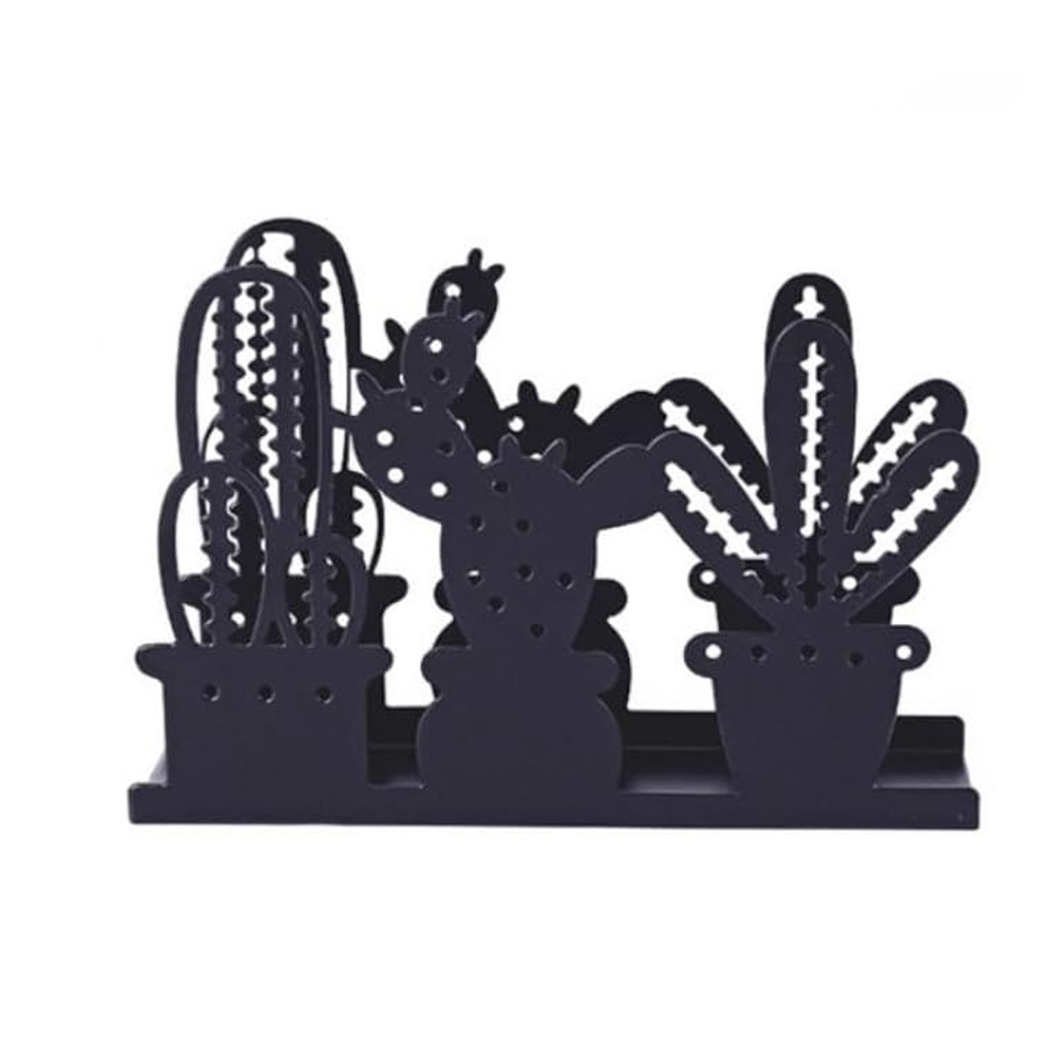 El servilletero metal cactus negro es una pieza funcional y decorativa que aporta un toque moderno a cualquier espacio.