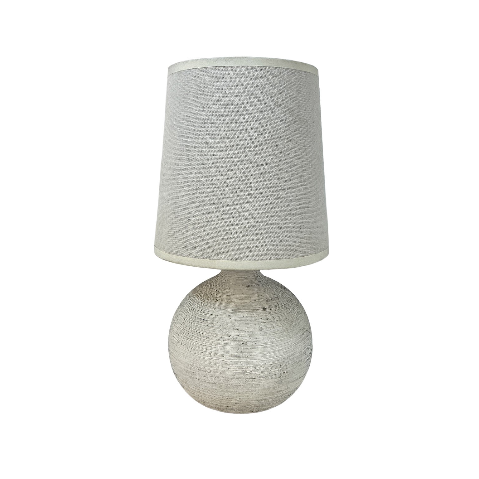 Con una base de cerámica en un atractivo tono gris y una tulipa de tela en colores neutros, esta lámpara se adapta a diversos ambientes.