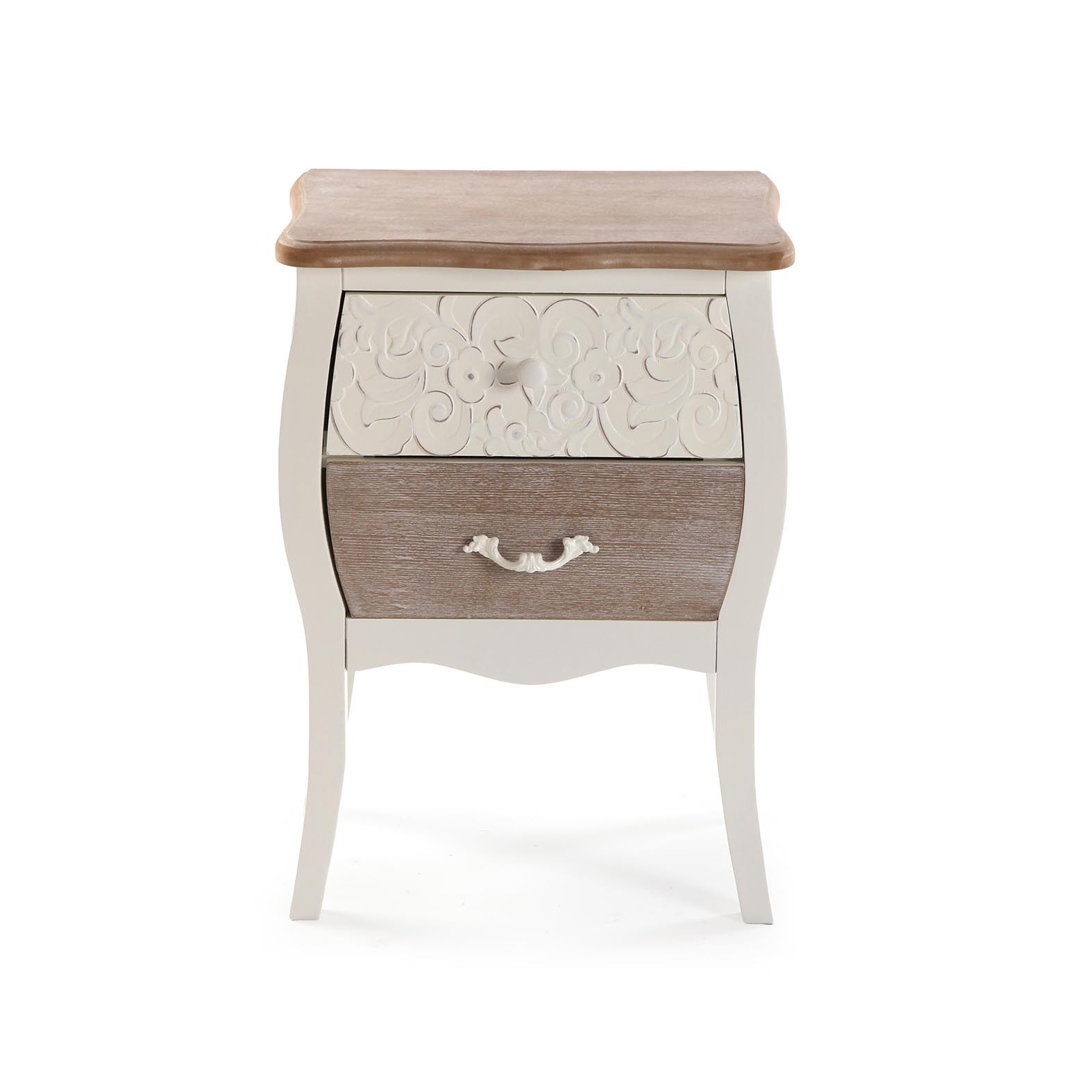 La mesita de noche rústica blanca con 2 cajones es un mueble auxiliar que combina funcionalidad y estilo.