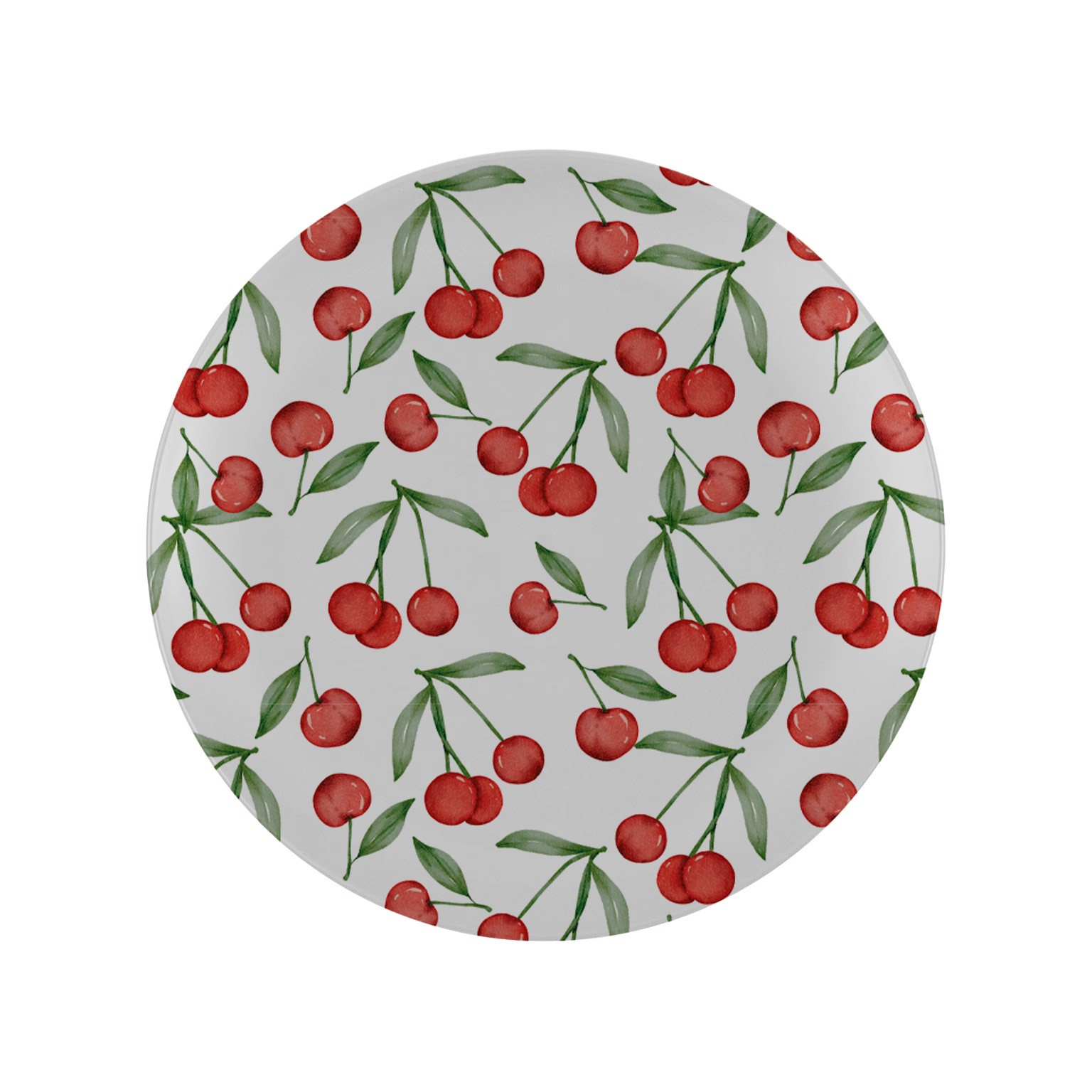 El plato redondo cerezas de 25 cm es un accesorio de cocina versátil y decorativo, fabricado en polipropileno.