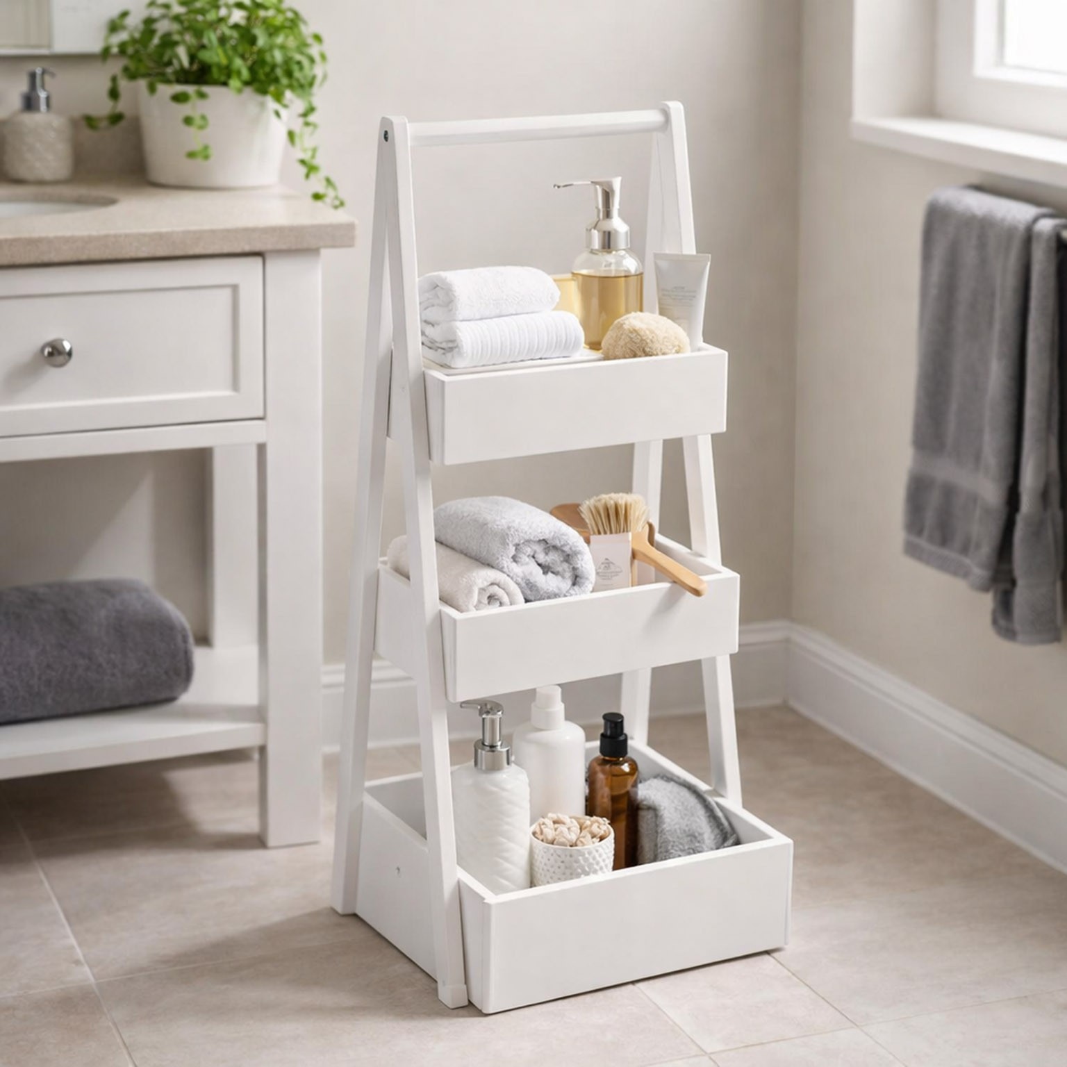 La estantería de 3 baldas blanca es un mueble funcional y versátil, ideal para el baño y otros espacios del hogar.
