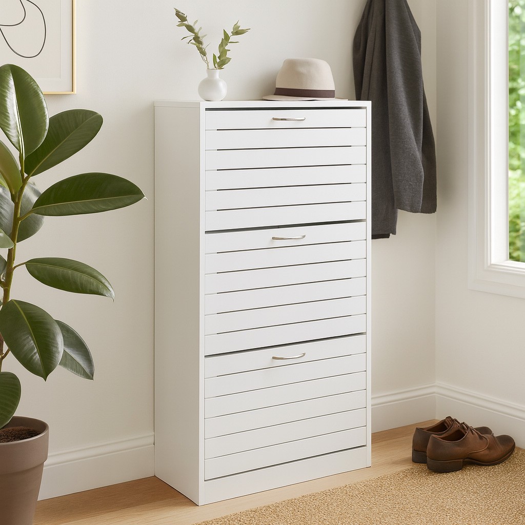 El zapatero de 3 cajones en color blanco es una solución funcional y elegante para el almacenamiento de calzado.
