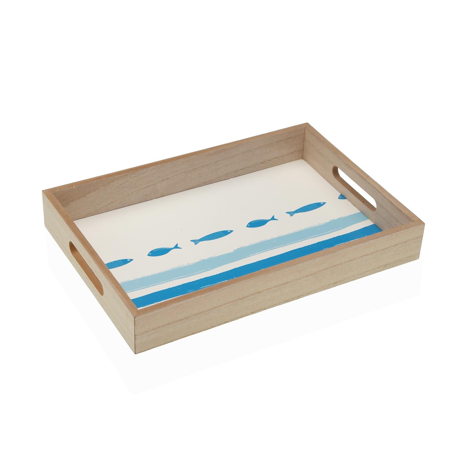 La bandeja Oceanic de madera, con dimensiones de 34 cm de largo, 24 cm de ancho y 5 cm de altura, es un elemento decorativo que combina funcionalidad y estilo.