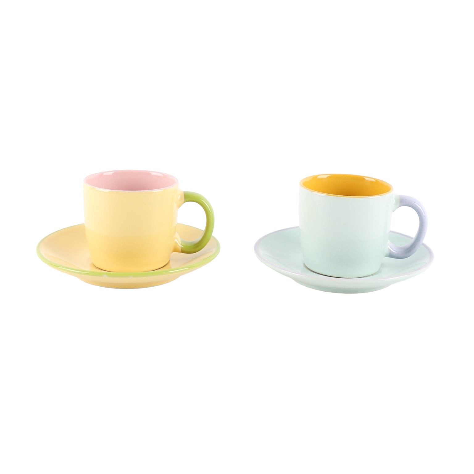 El set de 6 tazas de café con plato en tonos pastel es una elección ideal para el servicio de mesa en cualquier hogar.