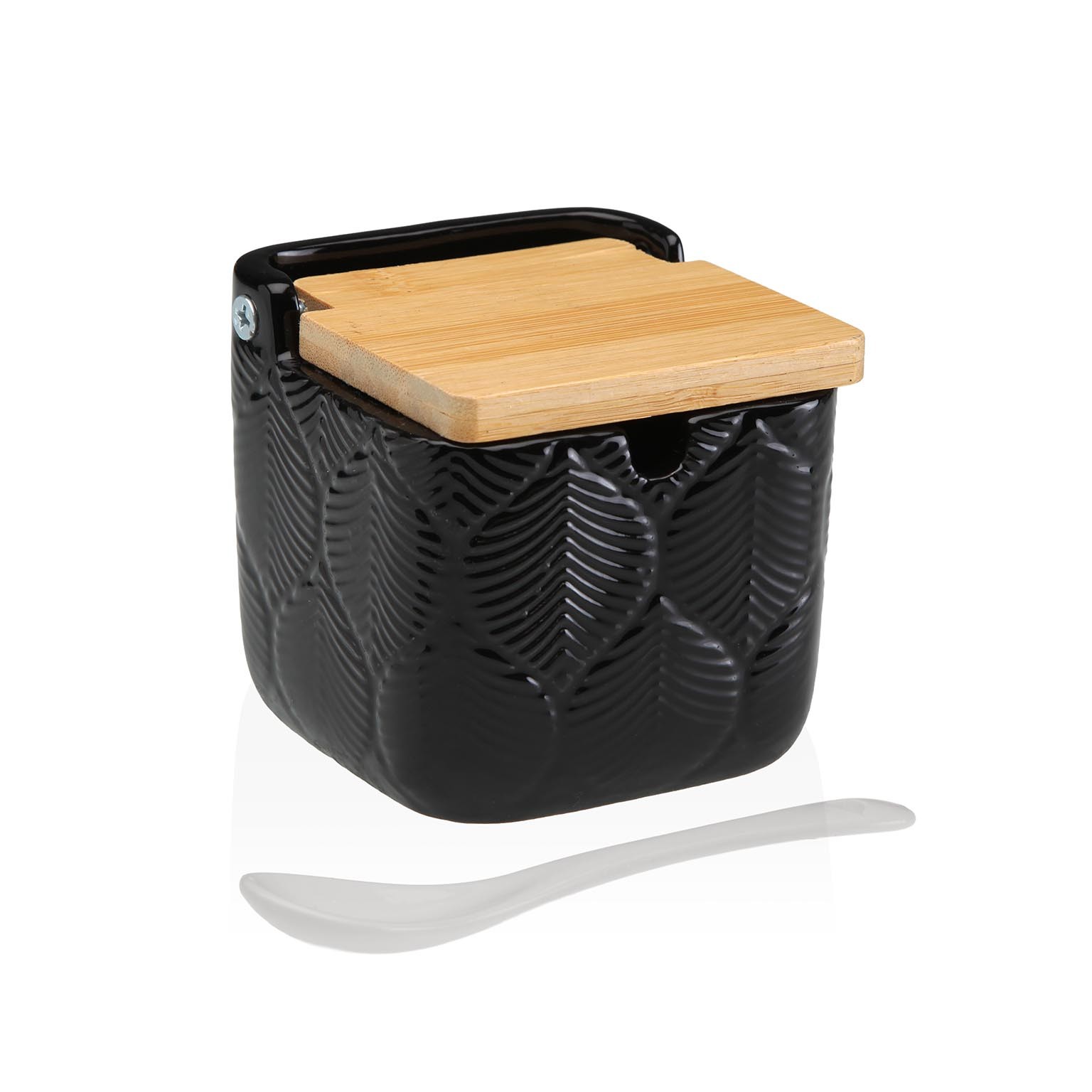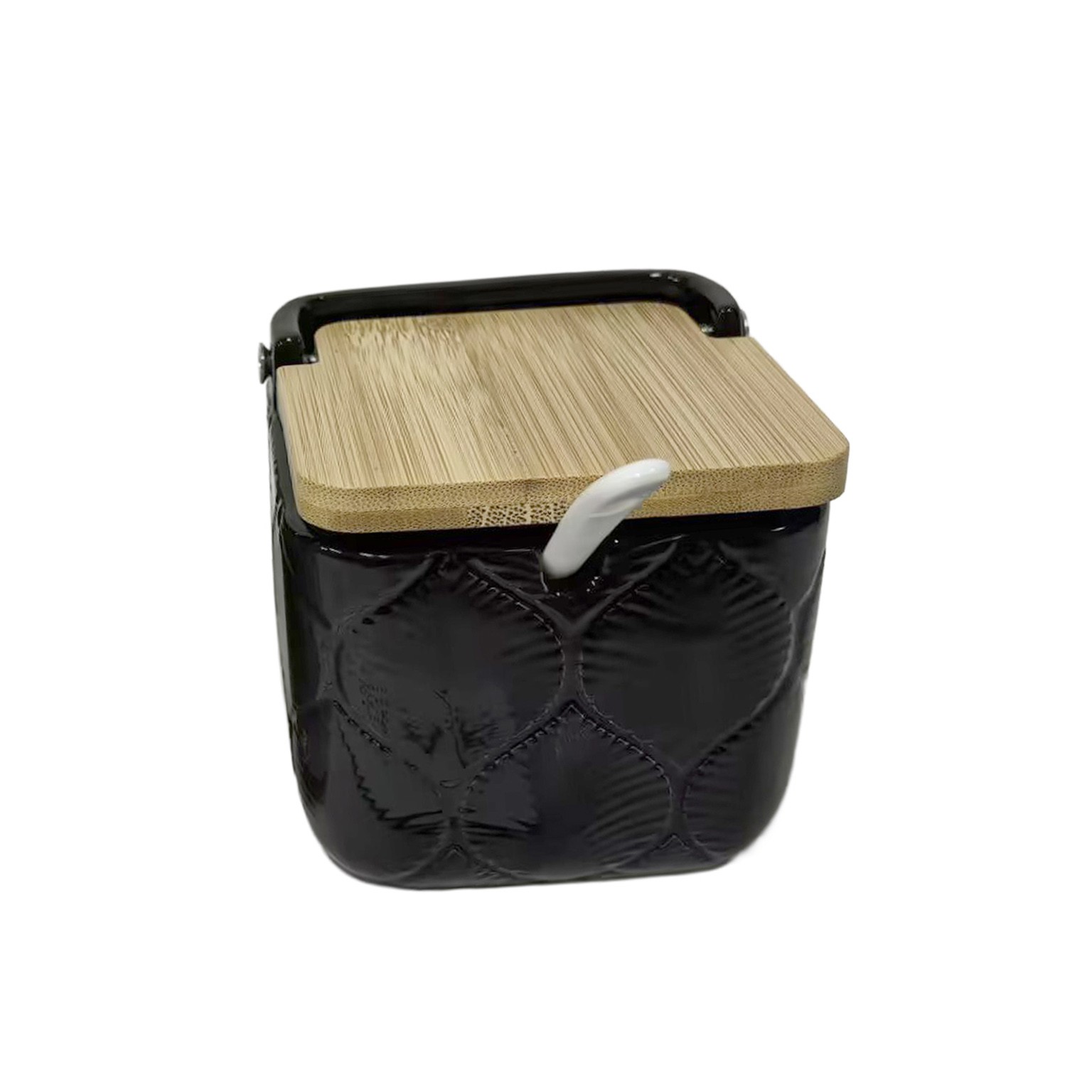 El azucarero cuadrado negro hojas combina funcionalidad y diseño moderno en la cocina.