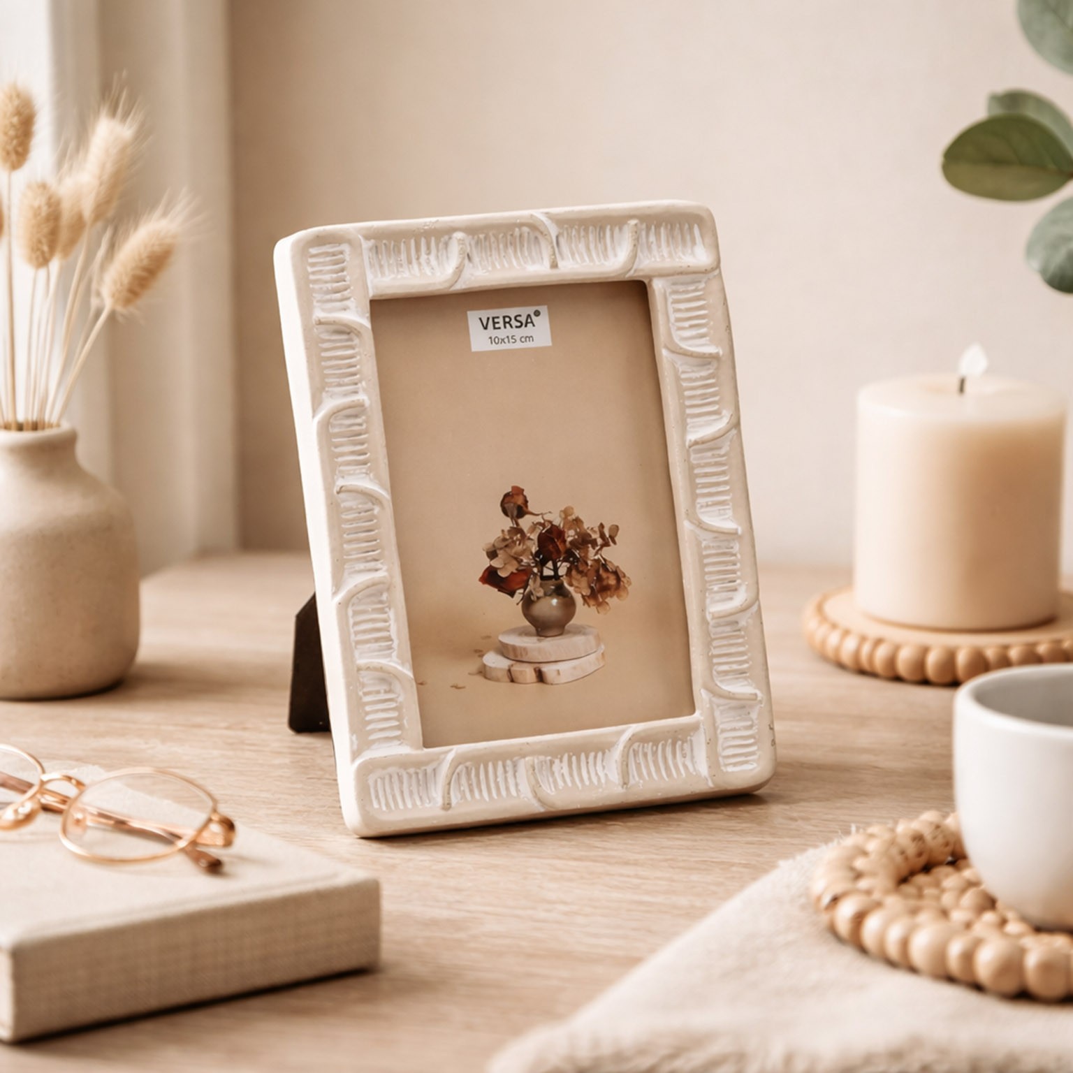 El portafoto de resina Vassa 10x15 es una pieza decorativa que combina funcionalidad y estilo moderno.