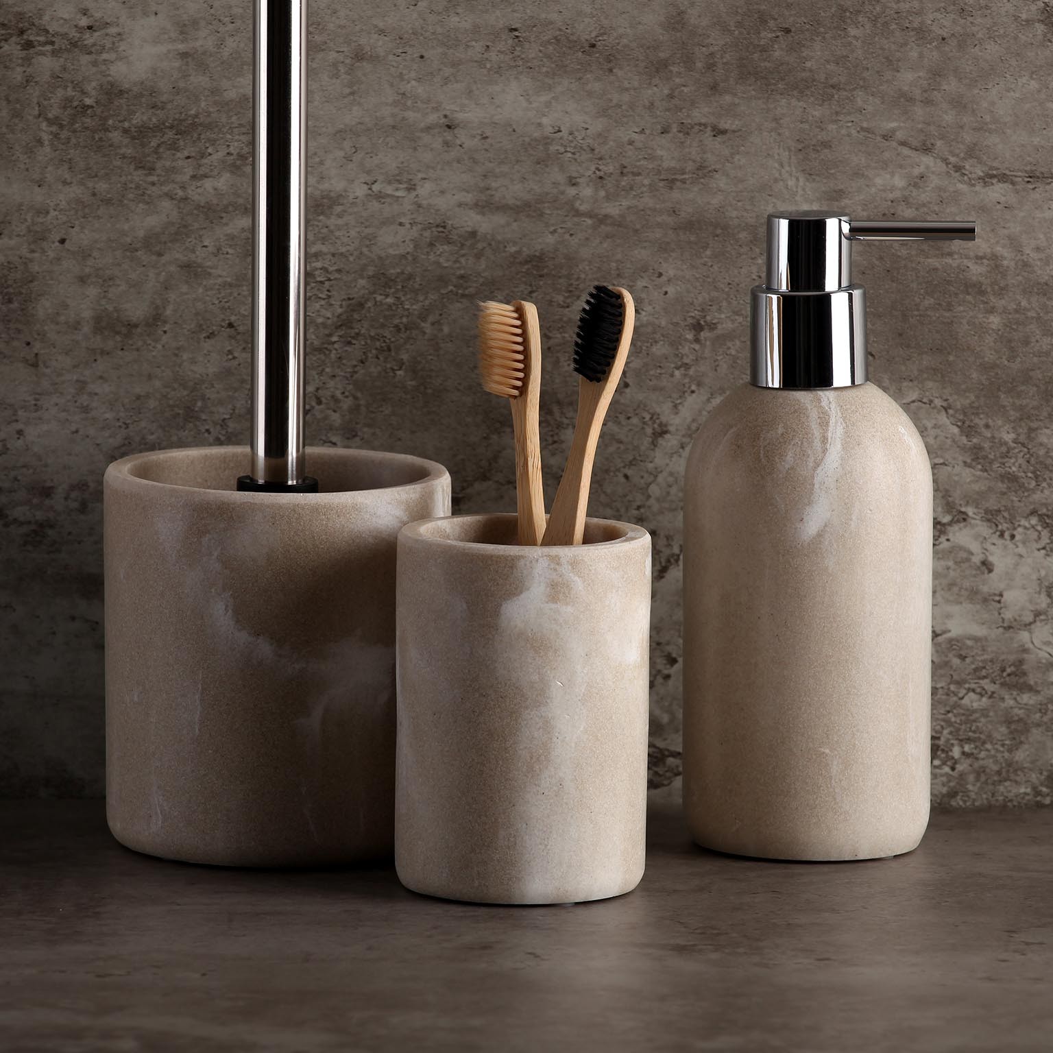 Ideal para sostener cepillos de dientes y utensilios de higiene dental, se integra perfectamente con otros elementos de baño en tonos neutros.