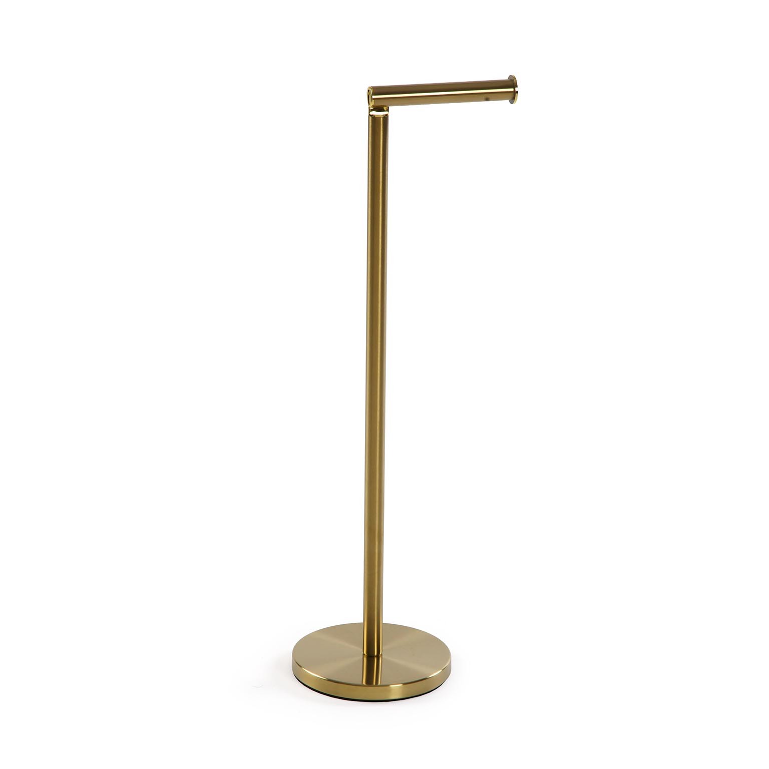 El portarollos de baño dorado es un accesorio funcional y elegante, diseñado para sostener rollos de papel higiénico en espacios del hogar.