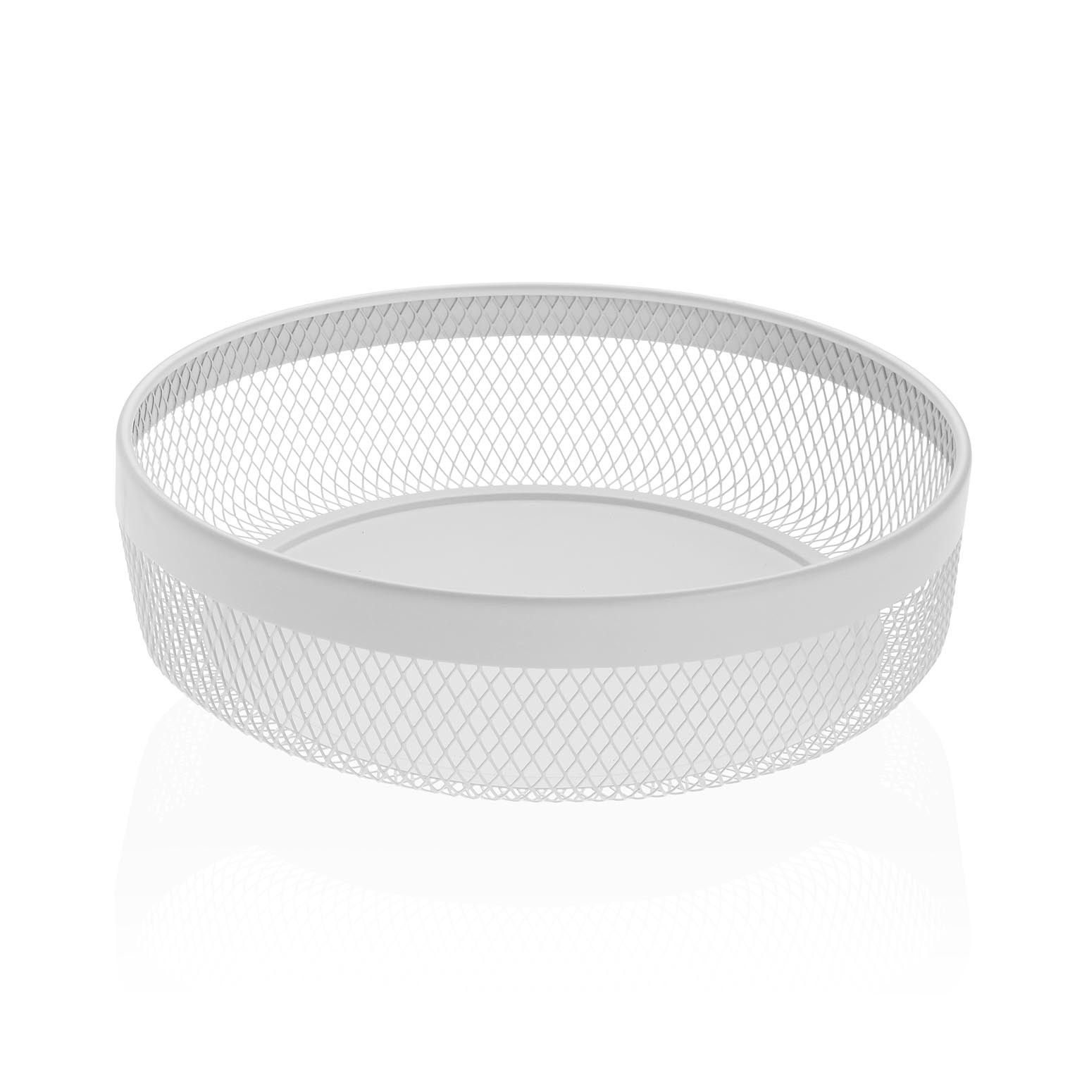 El frutero malla blanco, fabricado en hierro, presenta un diseño minimalista que se adapta a cualquier estilo decorativo.