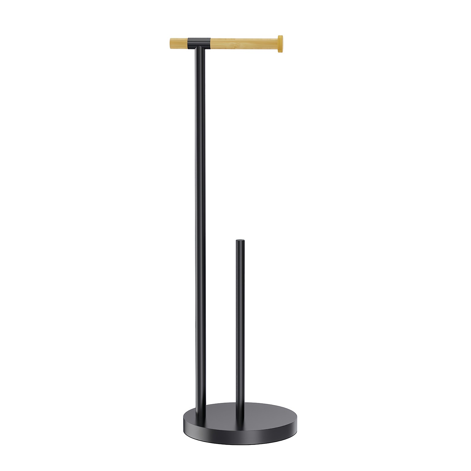 Con una altura de 68 cm, este accesorio organiza rollos de papel higiénico de manera accesible.