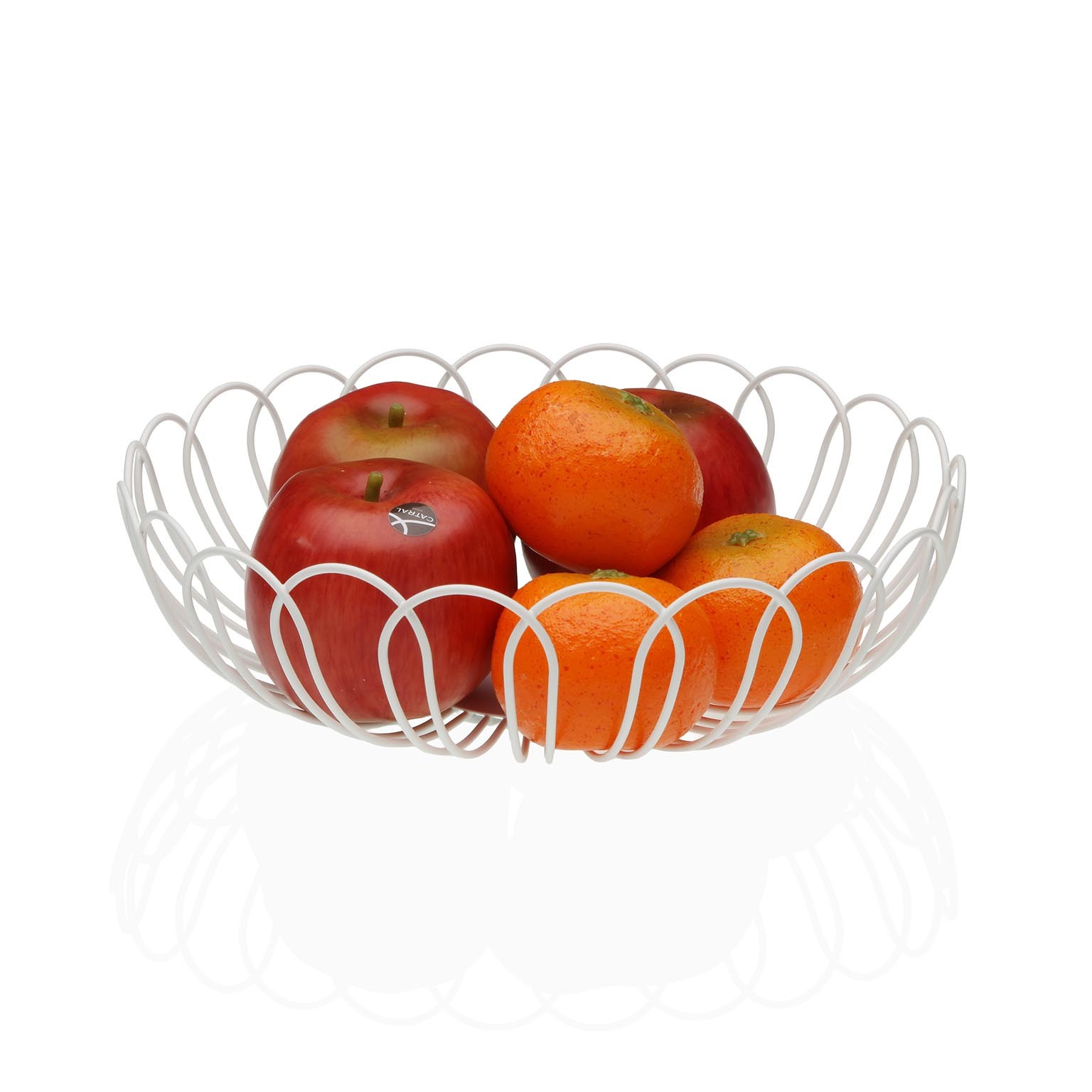 El frutero Flor Blanco es un elegante accesorio de cocina fabricado en metal, que destaca por su diseño moderno y funcional.
