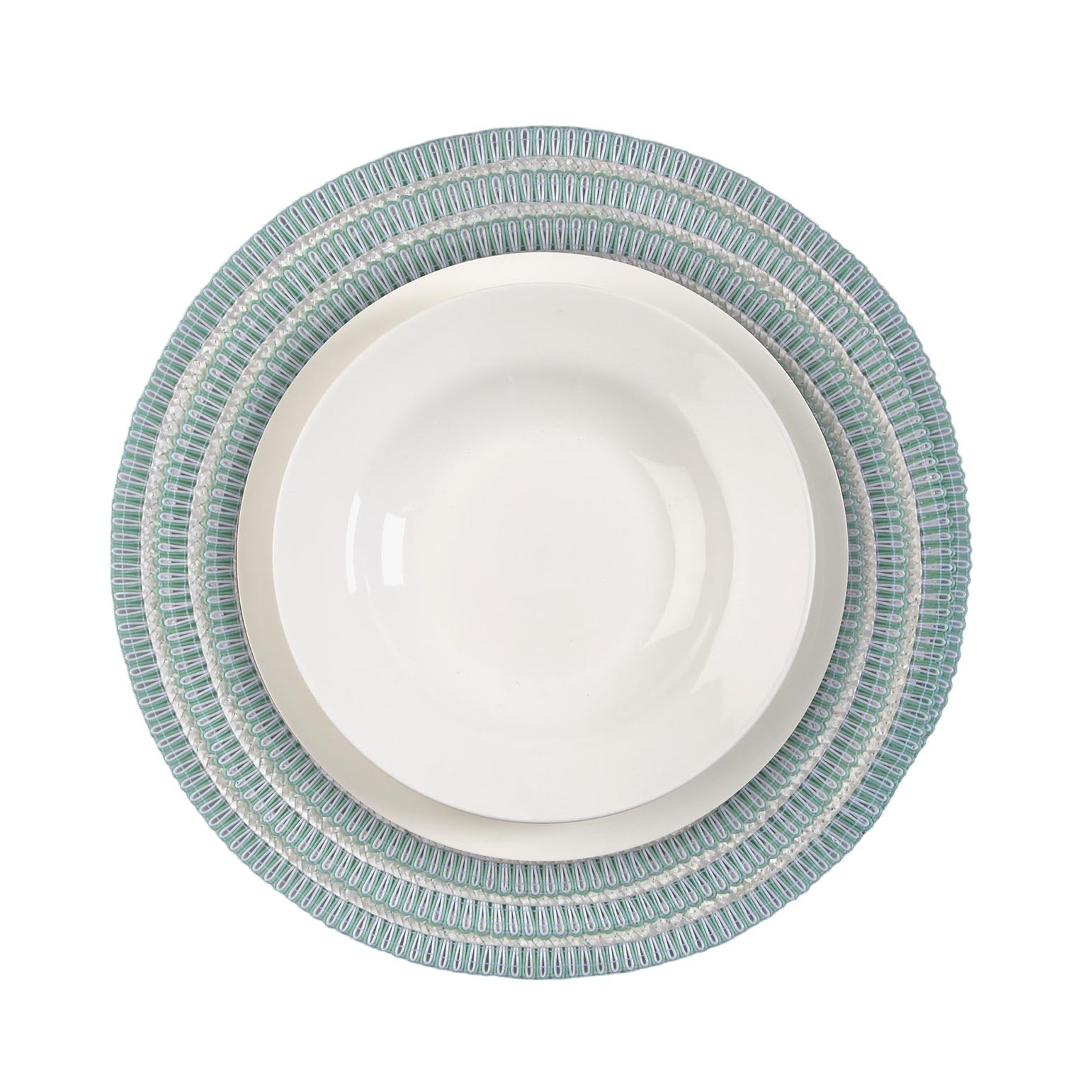 El salvamantel redondo azul y blanco es un complemento esencial para la mesa, diseñado para proteger superficies de manchas y calor mientras añade un toque decorativo.