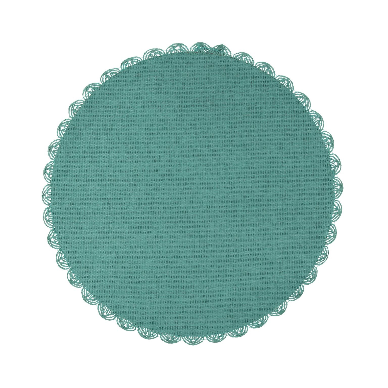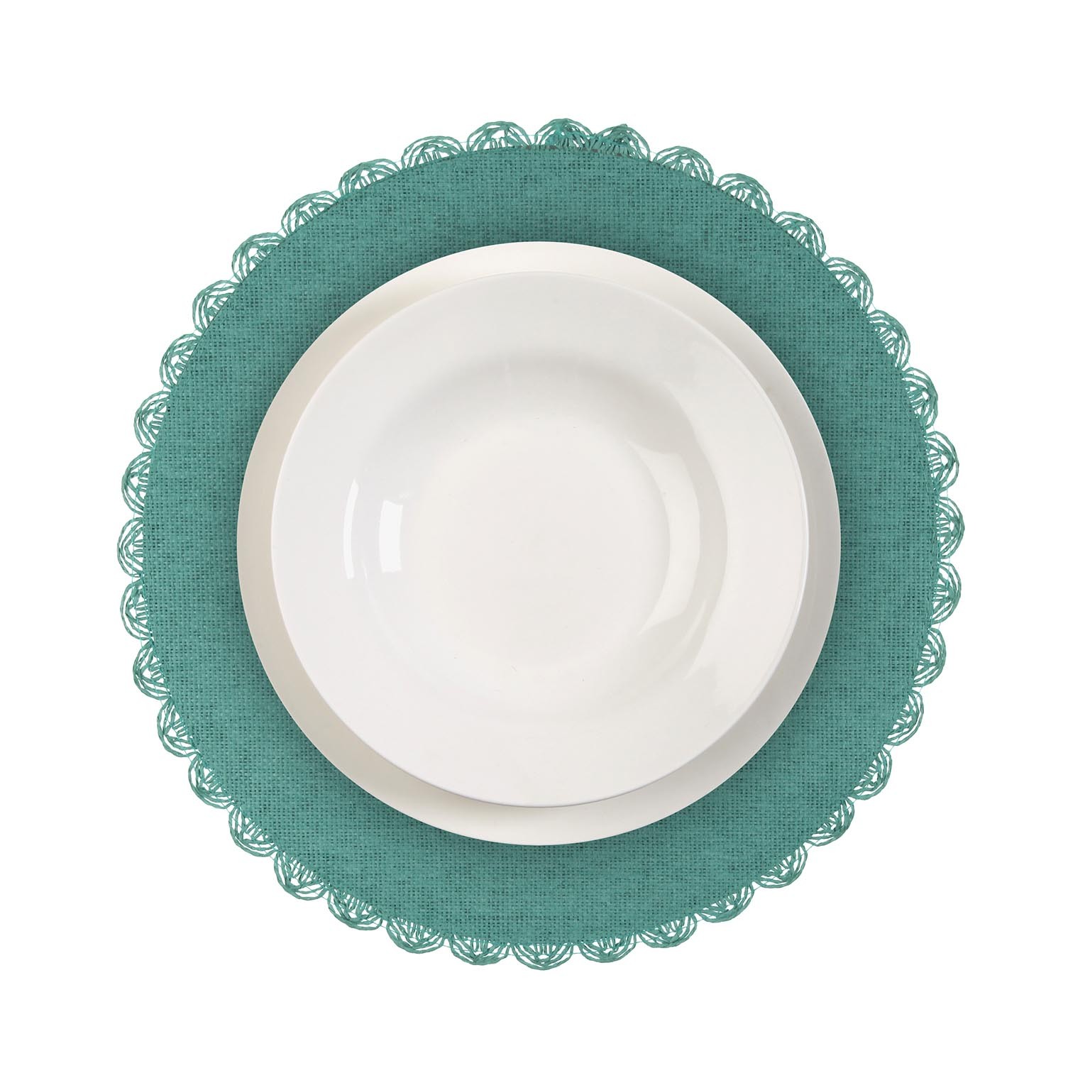 El salvamantel de papel redondo turquesa es un complemento esencial para el servicio de mesa, diseñado para proteger las superficies durante comidas y eventos.