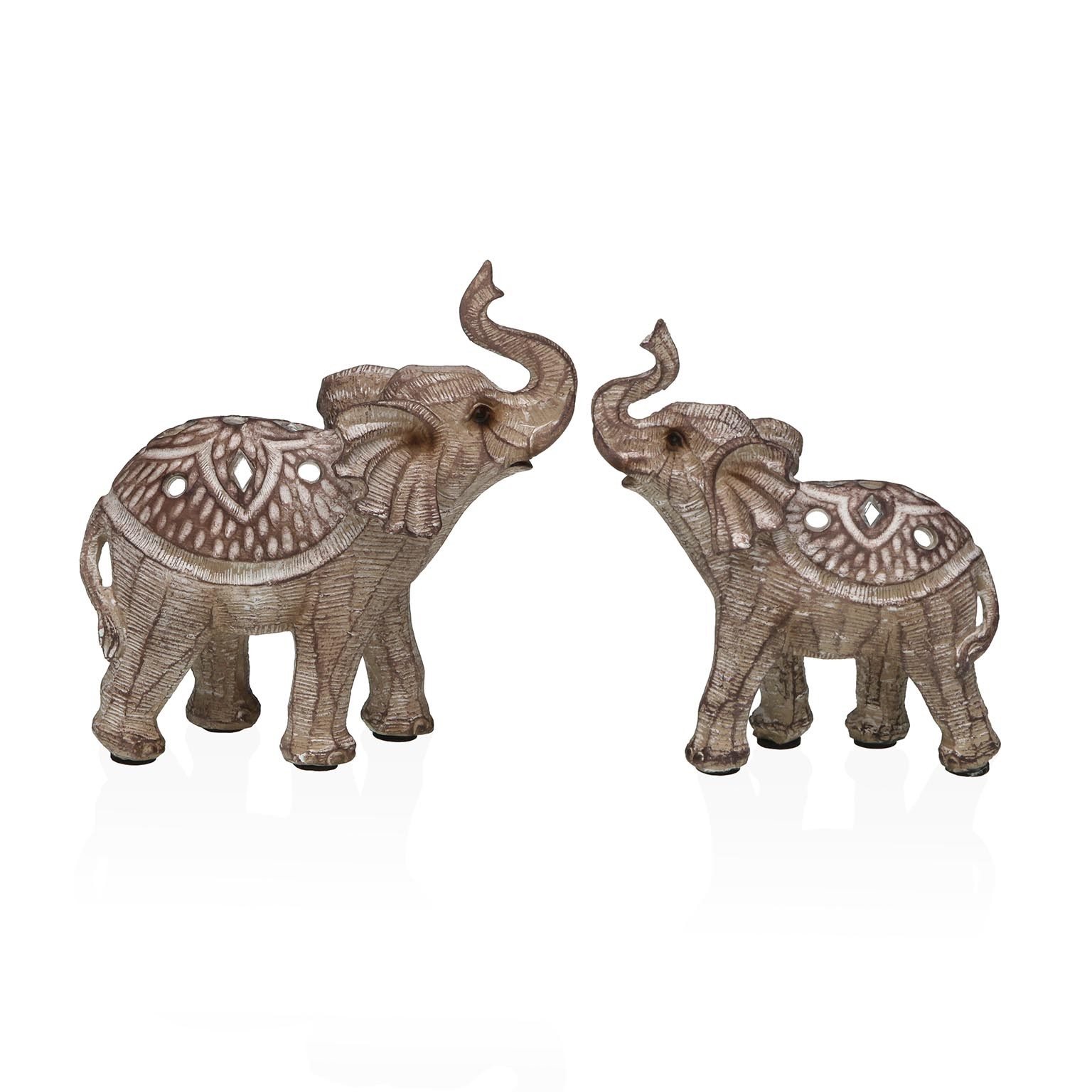 La figura elefante Siena S es un objeto decorativo elaborado en resina, que aporta un toque distintivo a cualquier espacio.