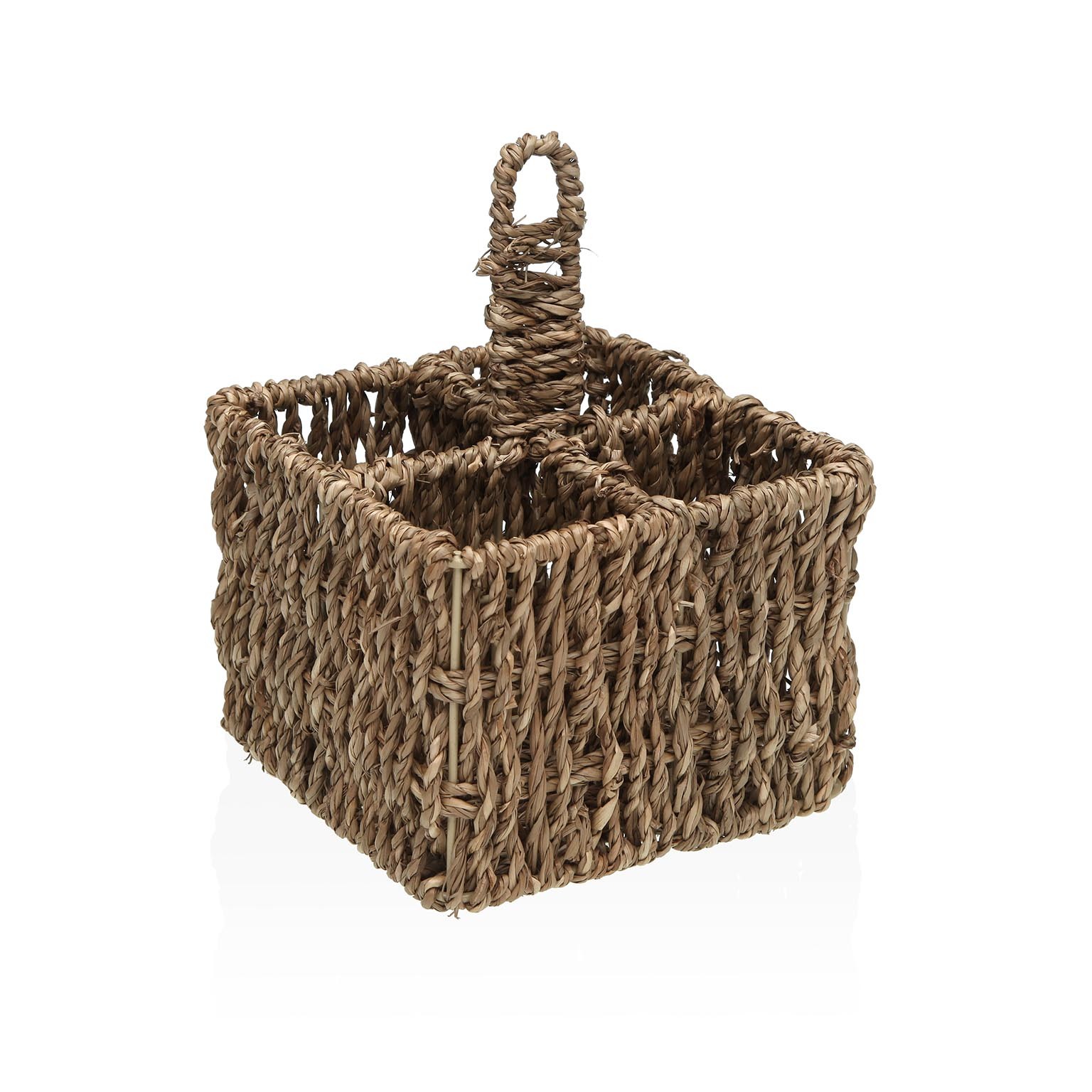 La cesta compartimentos es un organizador de baño elaborado en alga, que destaca por su diseño rústico y natural.