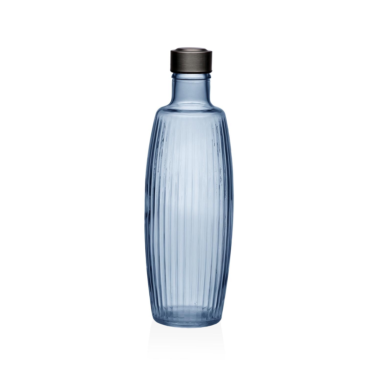La botella de cristal 1,2lt Venus azul es un elegante recipiente de almacenamiento, ideal para líquidos como agua o jugos.