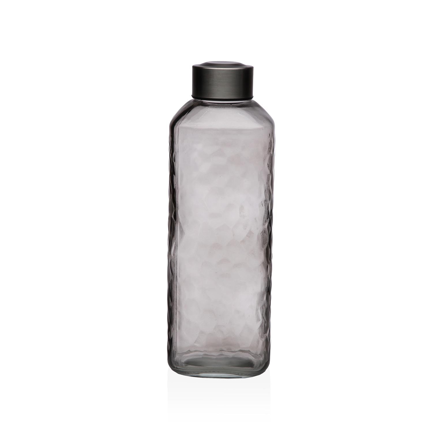 La botella de 1 litro en cristal gris es un elegante recipiente de almacenamiento diseñado para líquidos.