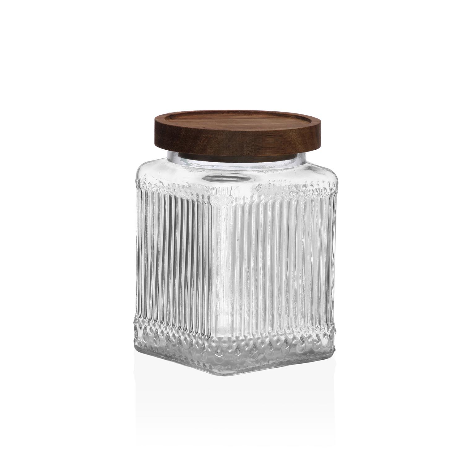 El Bote de Cristal con Tapa de Acacia de 730 ml es un elemento funcional y decorativo para la cocina.