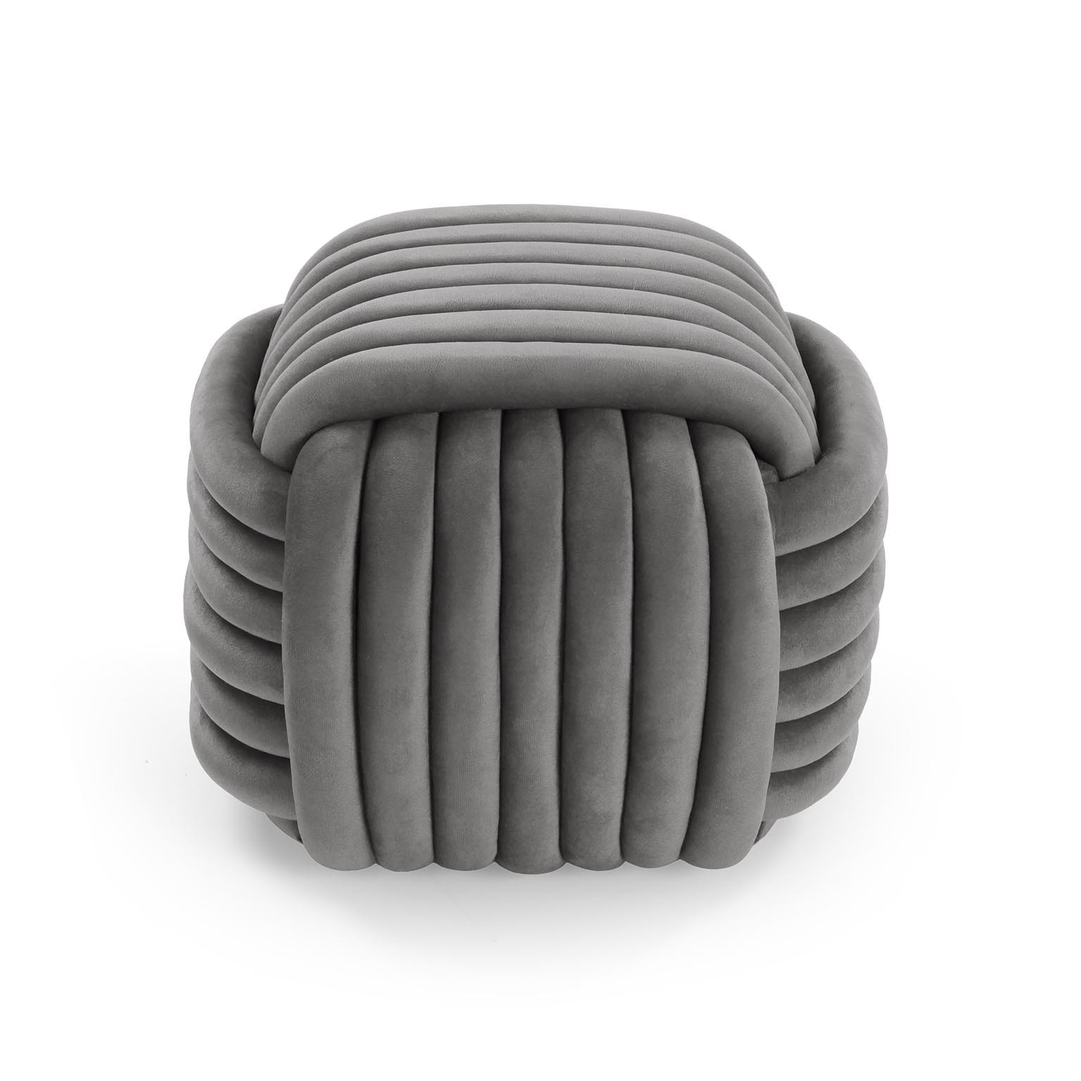 El puf cuadrado gris claro Knot es un mueble auxiliar versátil que combina funcionalidad y estilo moderno.