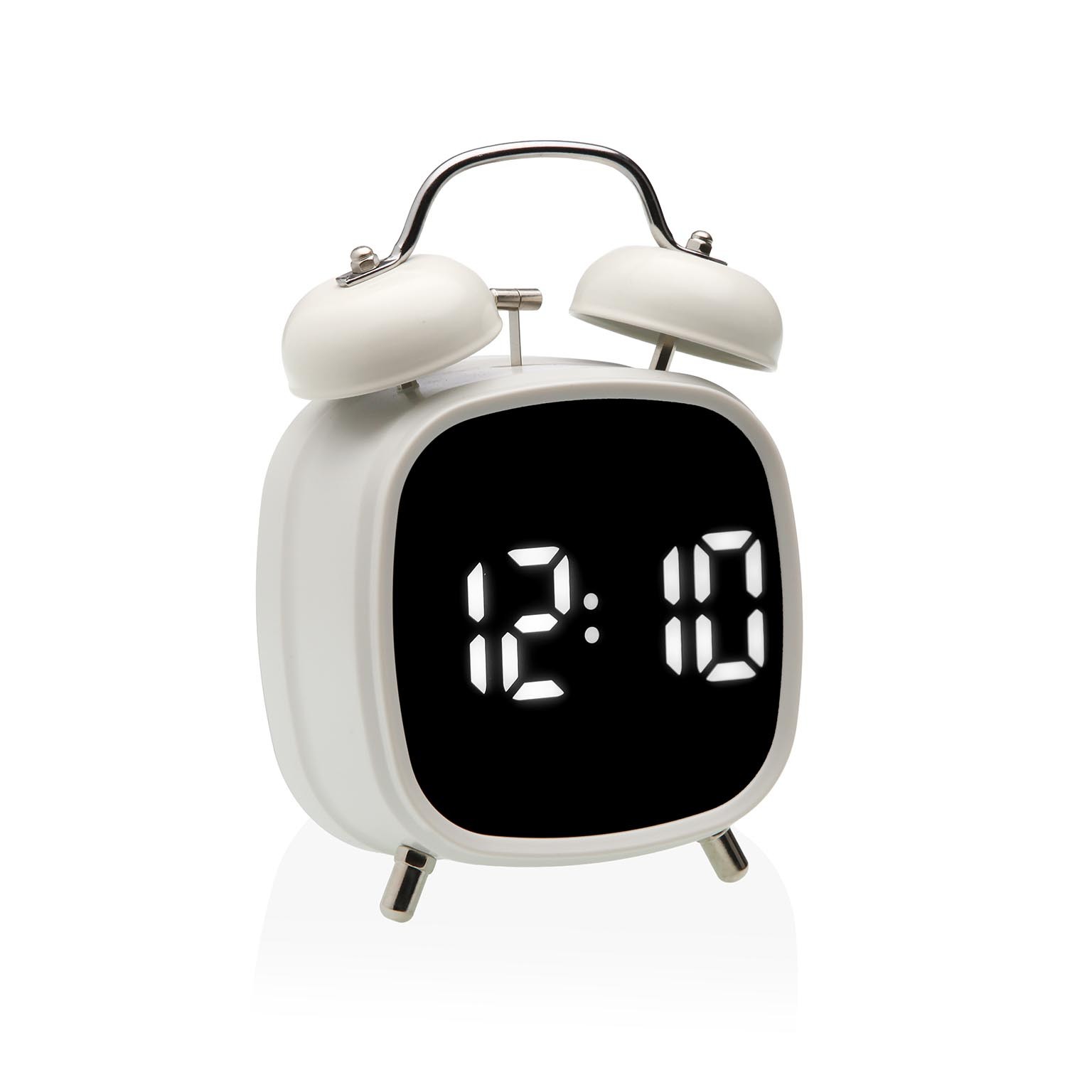 El reloj despertador digital blanco combina funcionalidad y diseño moderno, ideal para ambientes contemporáneos.