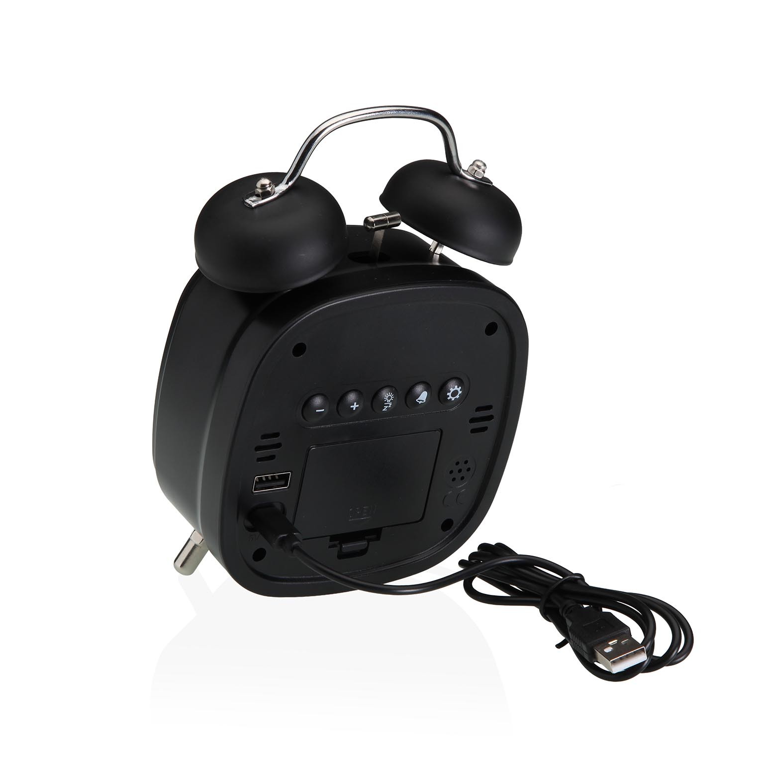 El reloj despertador digital negro combina funcionalidad y estilo en un diseño minimalista y moderno.